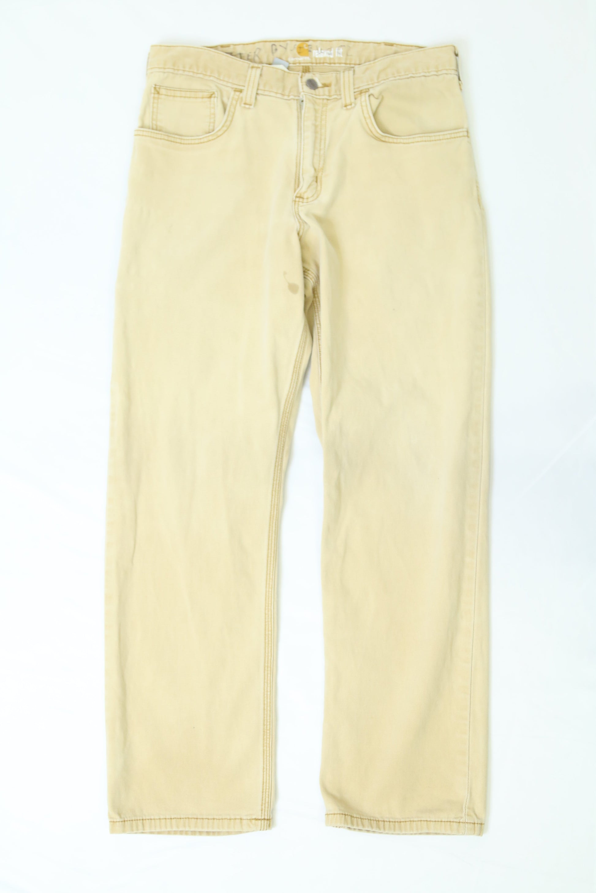 Men's Beige Carhartt Relaxed Fit Work Pants Size 32"